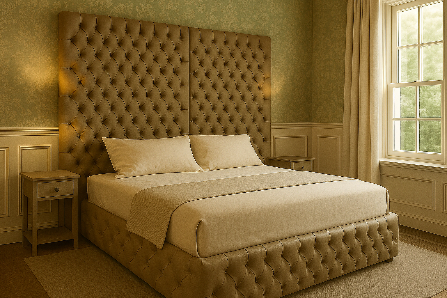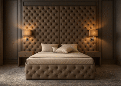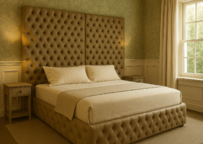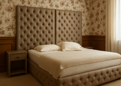 Wybierz ponadczasowy styl i komfort z naszym luksusowym łóżkiem pikowanym z wysokim zagłówkiem. Ten model zachwyca klasycznym, głęboko pikowanym wzorem typu chesterfield, który nadaje wnętrzu wyjątkowej elegancji.